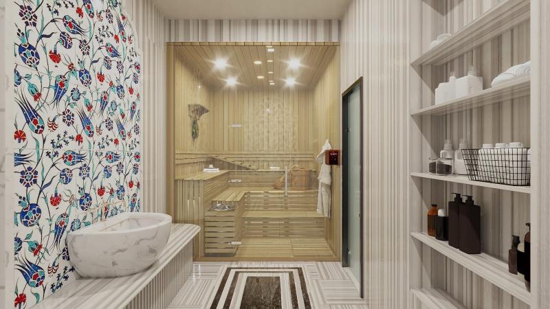 *villarıımızın zemin katı hamam, sauna, sinema odası, hizmetli odası, çamaşır odası ve otopark imkanı