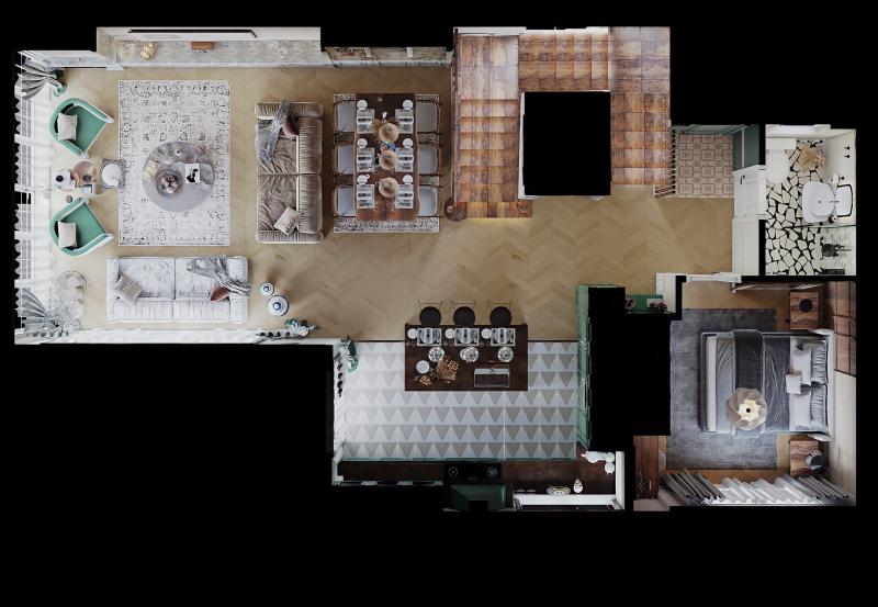 * villarıımızın giriş katı salon mutfak eşsiz teras wcbanyo ve 1 odalı veya odasız
